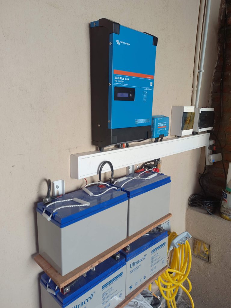 ♻️ Instalamos un sistema Victron de 3kW con 4 paneles Amerisolar de 400Wp y 4 baterías de gel 12v 100Ah exlcusivamente para cortes de luz.